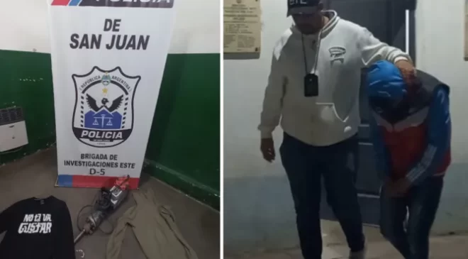 Por esta situación quedó detenido y puesto a disposición del Segundo Juzgado de Instrucción por el delito de robo. Se le secuestró el martillo demoledor marca BTI MAQ.