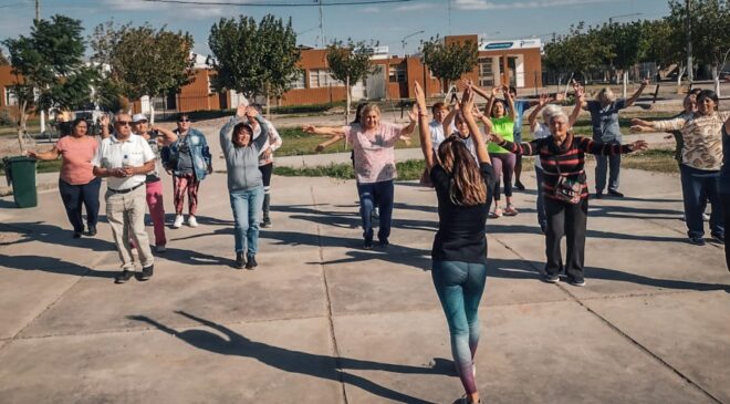 De la mano de profesores de educación física y de danza, las personas mayores y de otras edades que se animaron a participar, realizaron actividades, bailaron y se les hicieron controles de salud.