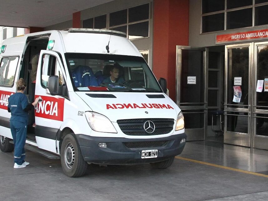 El joven conductor de la moto fue asistido por el personal de una ambulancia de Emergencias Médicas que lo trasladó al hospital Rawson.