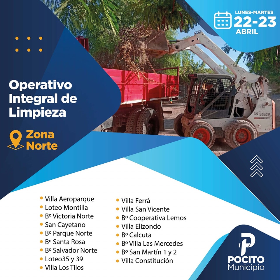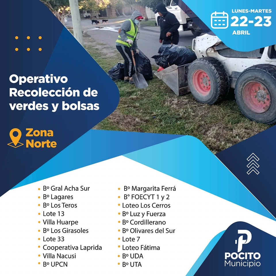 La Municipalidad de Pocito ejecutará nuevos trabajos de limpieza en los distintos barrios de Zona Norte, y además también realizarán recolección de Bolsas y verdes en el departamento.