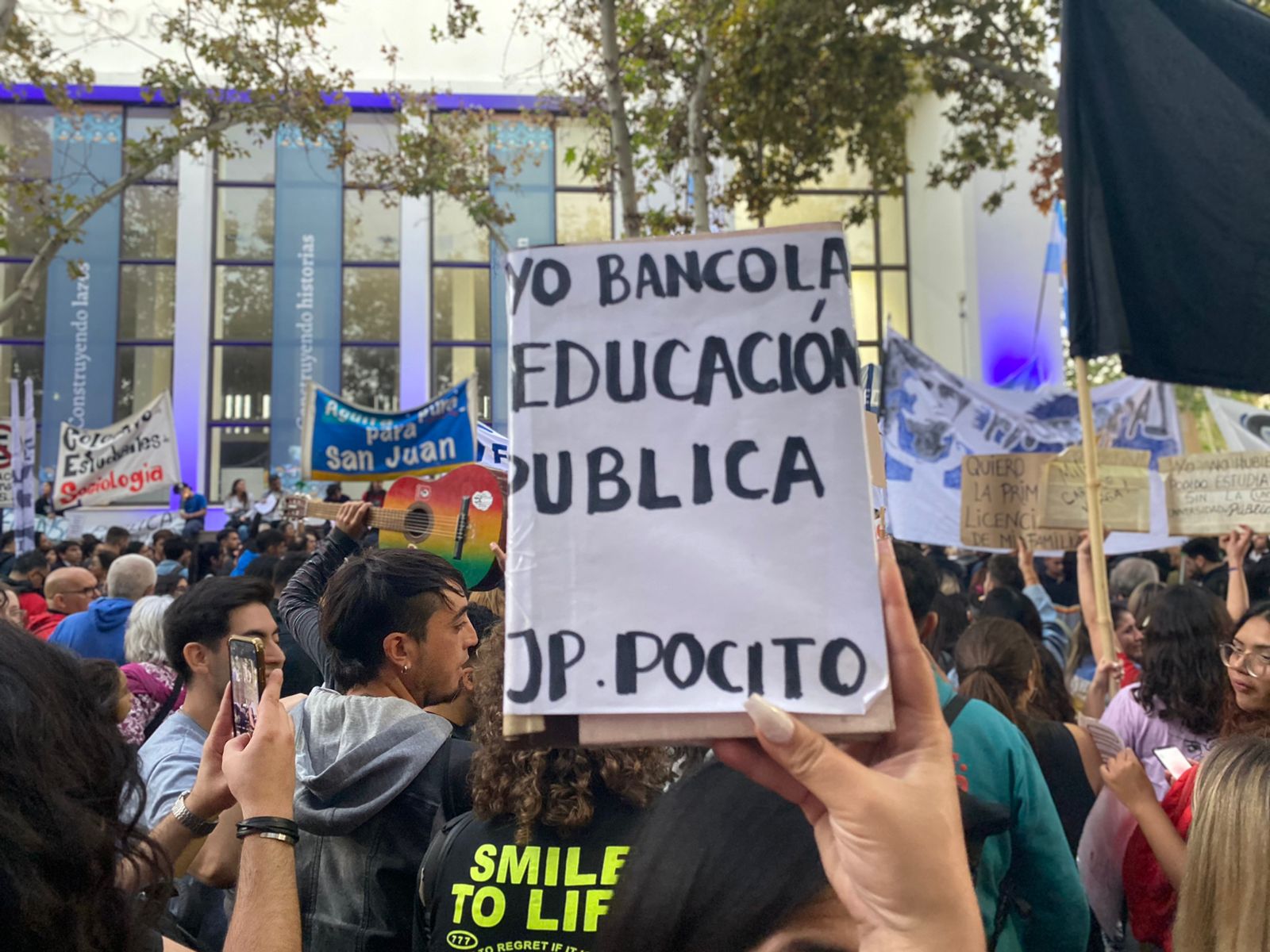 Masiva marcha por la universidad pública en San Juan donde se habla de que hubo más de 10 mil personas entre  trabajadores de diferentes sectores de la UNSJ, como así también representantes sindicales que llegaron hasta inmediaciones de la Facultad de Filosofía.