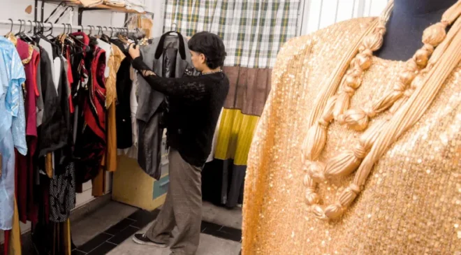 El resultado son 80 conjuntos únicos, diseñados para cuatro grupos artísticos —músicos, circenses, clowns y actores— que se distinguirán por paletas de color vibrantes y materiales brillantes, como **foil, cuerinas, algodón crudo, plisados, poliéster sublimado y lentejuelas, en tonos **dorado, plateado, cobrerojo y negro*.