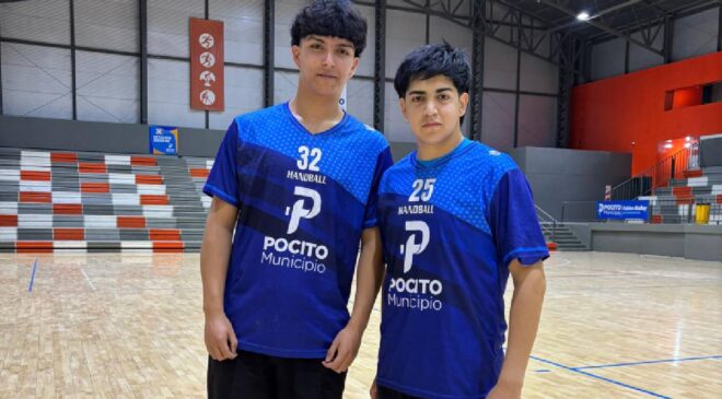 Jeremías Fernández y Tomás Carrizo, integrantes de la Escuela de Handball de la Municipalidad de Pocito, formaron parte del equipo sanjuanino que participó en los Juegos Binacionales que tuvieron lugar en Maule, Chile.