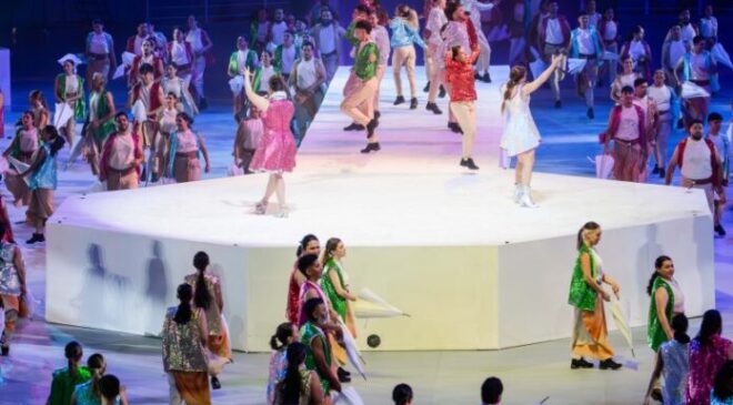 Luego, al ritmo musical de “vamos San Juan” entró en escena una propuesta multidisciplinaria con una narrativa poética y musical, que celebra a San Juan a través de su gente, sus tradiciones, sus paisajes y su proyección hacia el futuro.