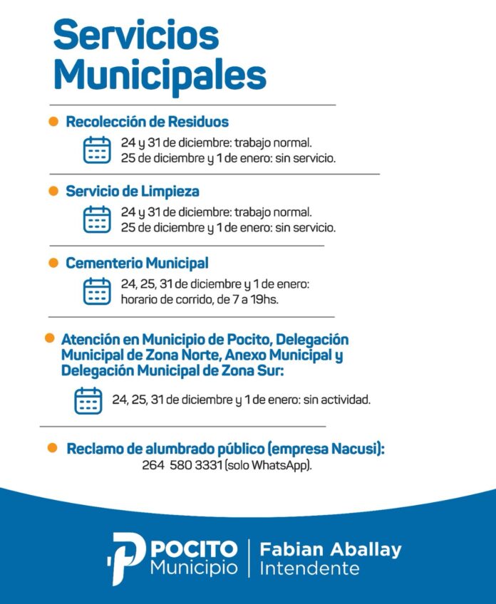 Así funcionarán los servicios municipales en Pocito durante las fiestas