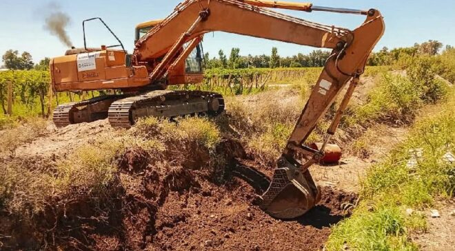 El Municipio de Pocito en conjunto con la Dirección de Hidráulica realiza tareas de mantenimiento en los cargadores de crecientes, que son la defensa del canal Céspedes, y disipadores de agua.